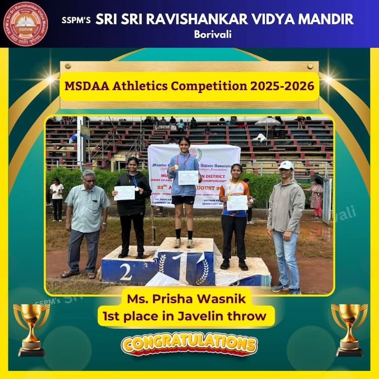 ✨ SSRVM Borivali is thrilled to share yet another moment of glory! ✨ Our young athletes showcased their talent, determination, and sportsmanship at the MSDAA Athletics Competition 2025–2026 Prisha Wasnik (Grade 10) displayed remarkable strength and skill to secure the First Place in Javelin Throw ♂️♂️♂️ Vihaan Shah (Grade 9) showed tremendous endurance and spirit, earning the Third Place in the Triathlon Event These outstanding achievements highlight the commitment, passion, and excellence of our students and their dedicated mentors SSRVM Borivali is proud of you, champions!